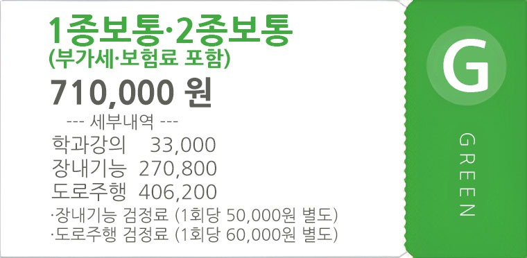 · 학과시험은 국가면허시험장에서만 가능하기에 저희 수강료에는 학과시험비용이 포함되지 않습니다.