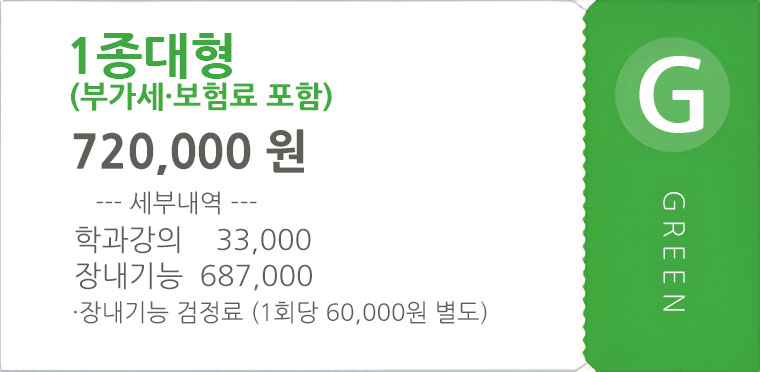 · 학과시험은 국가면허시험장에서만 가능하기에 저희 수강료에는 학과시험비용이 포함되지 않습니다.