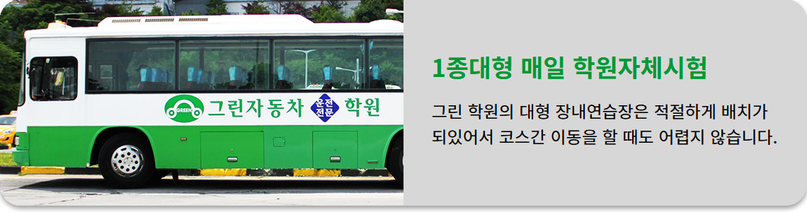 그린학원은 장내기능시험을 매일 학원에서 진행하여 학원 통학횟수를 획기적으로 줄였습니다. 또한 당일 시험이 가능하여 연습한 감이 있을 때 시험을 보실수 있어 유리합니다.