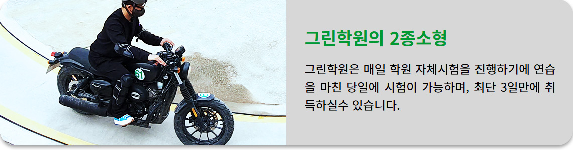 친절하고 숙련된 2종소형 전문 강사들이 체계적이고 실질적으로 교육하기에 2종소형면허 취득이 용이합니다